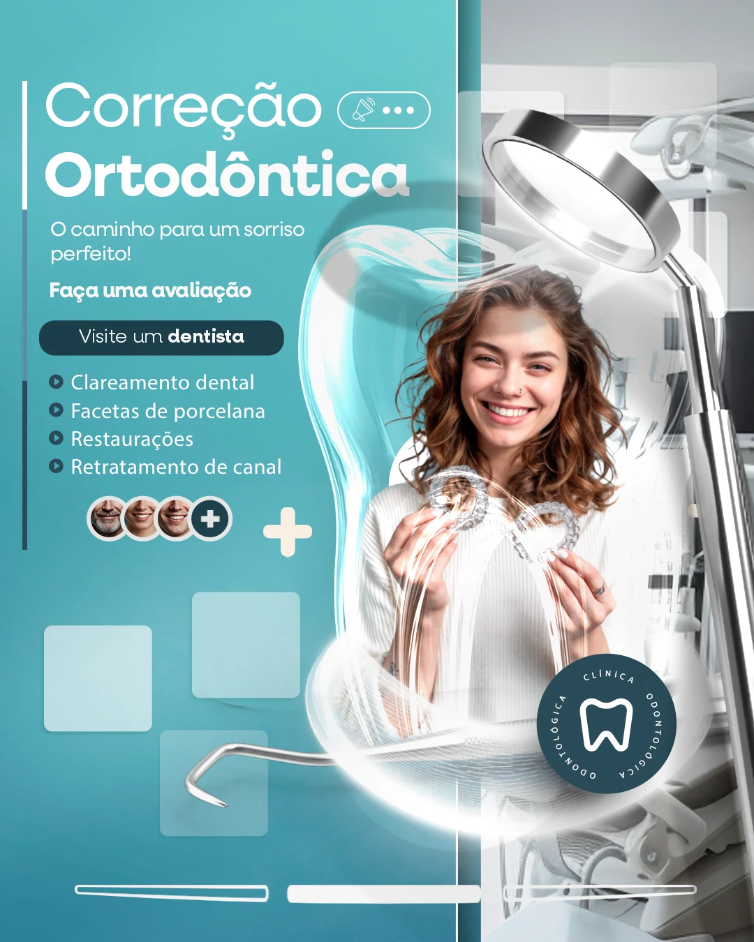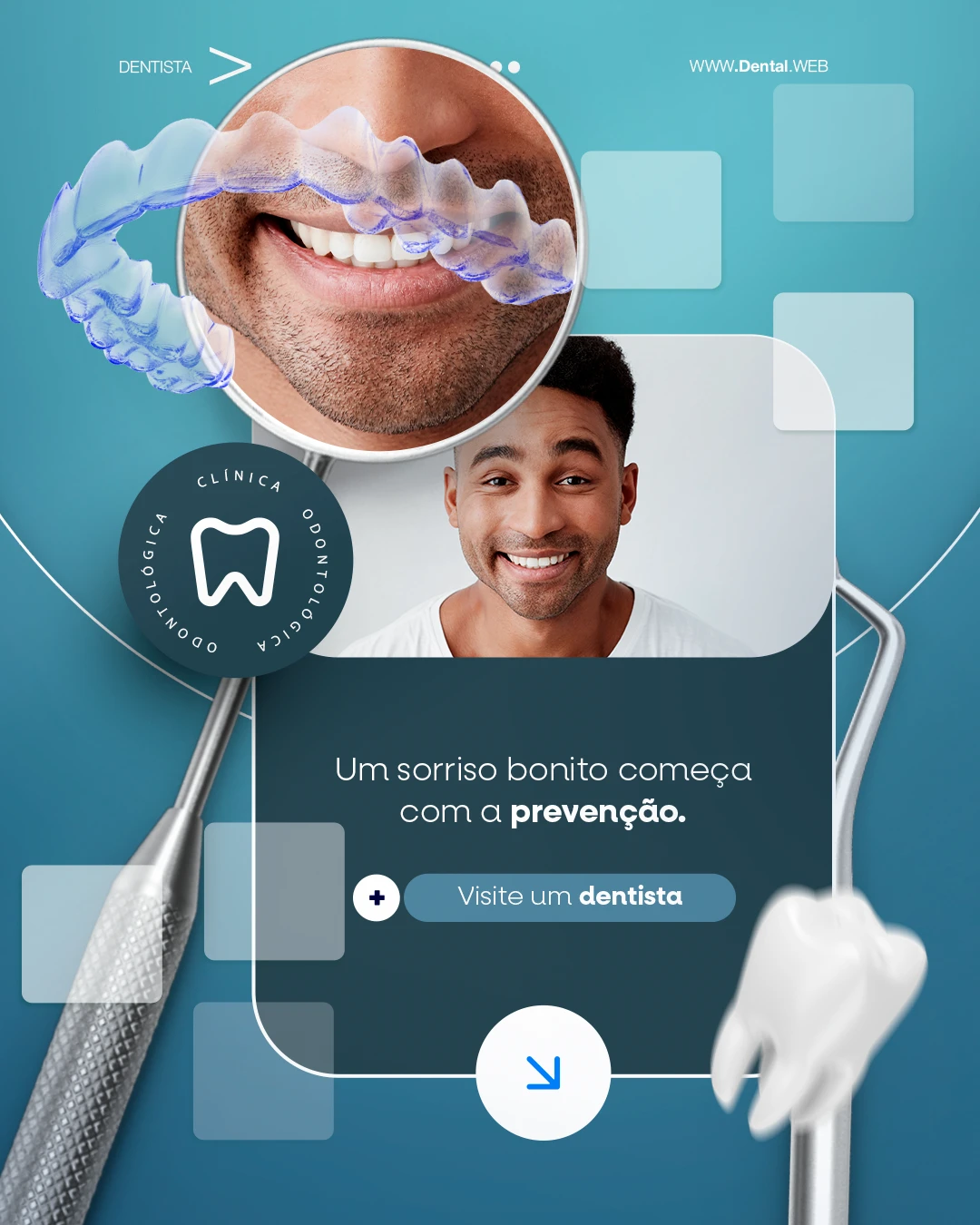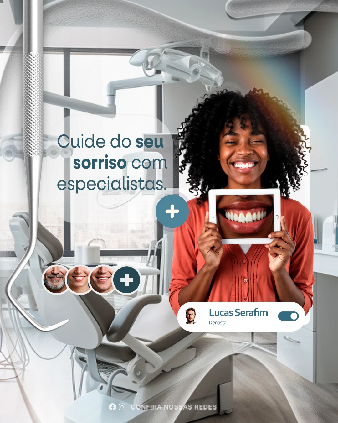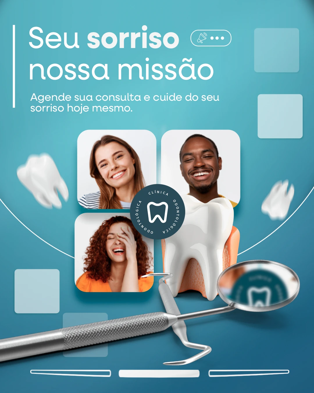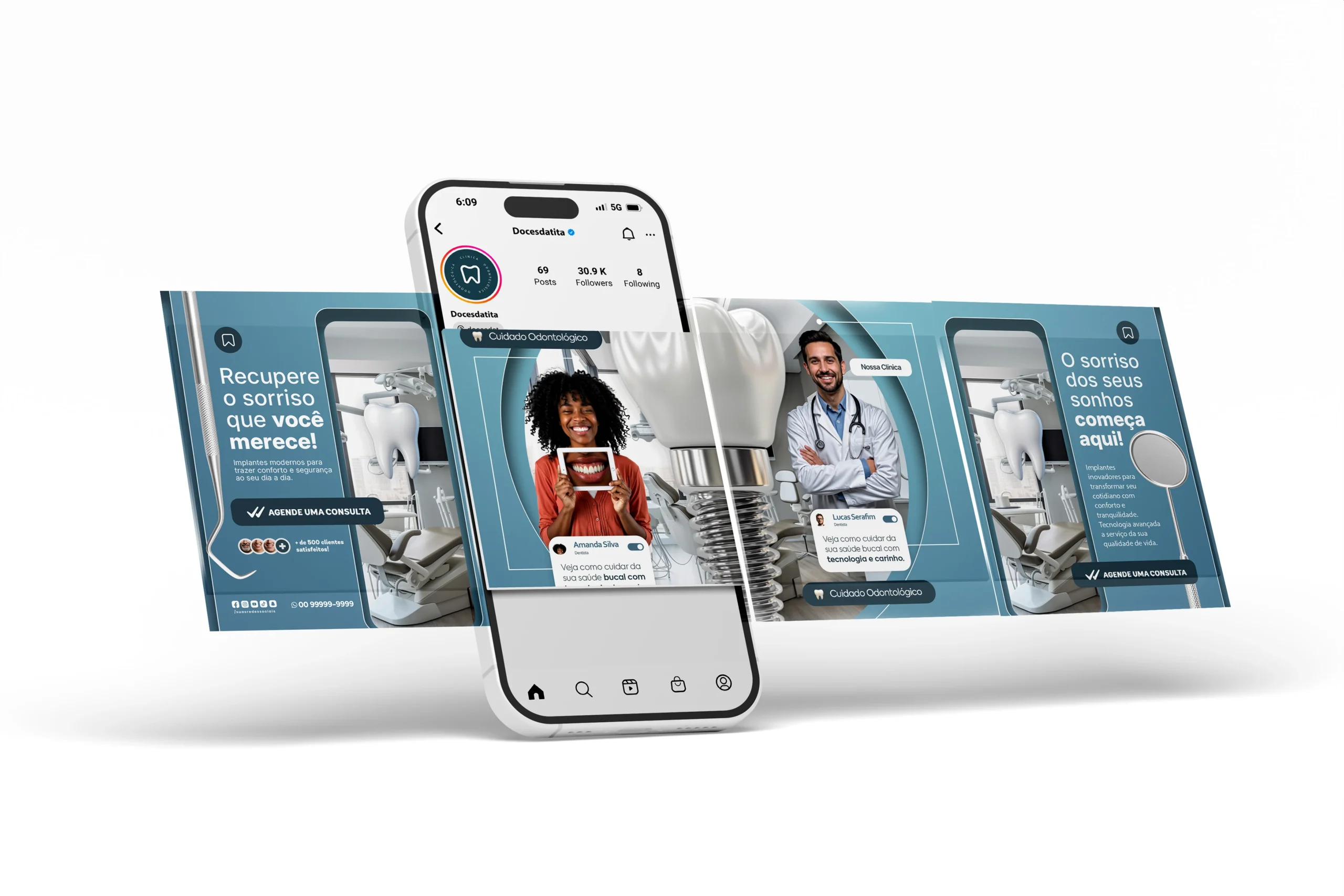 These projects was developed for social media with the goal of enhancing the visual identity of modern dental clinics. The composition combines realistic photographic elements with clean icons and graphics, using a light color palette with shades of blue that evoke health, trust, and professionalism. The images highlight smiles and dental equipment, creating a welcoming and informative visual narrative that brings the audience closer to the services offered.