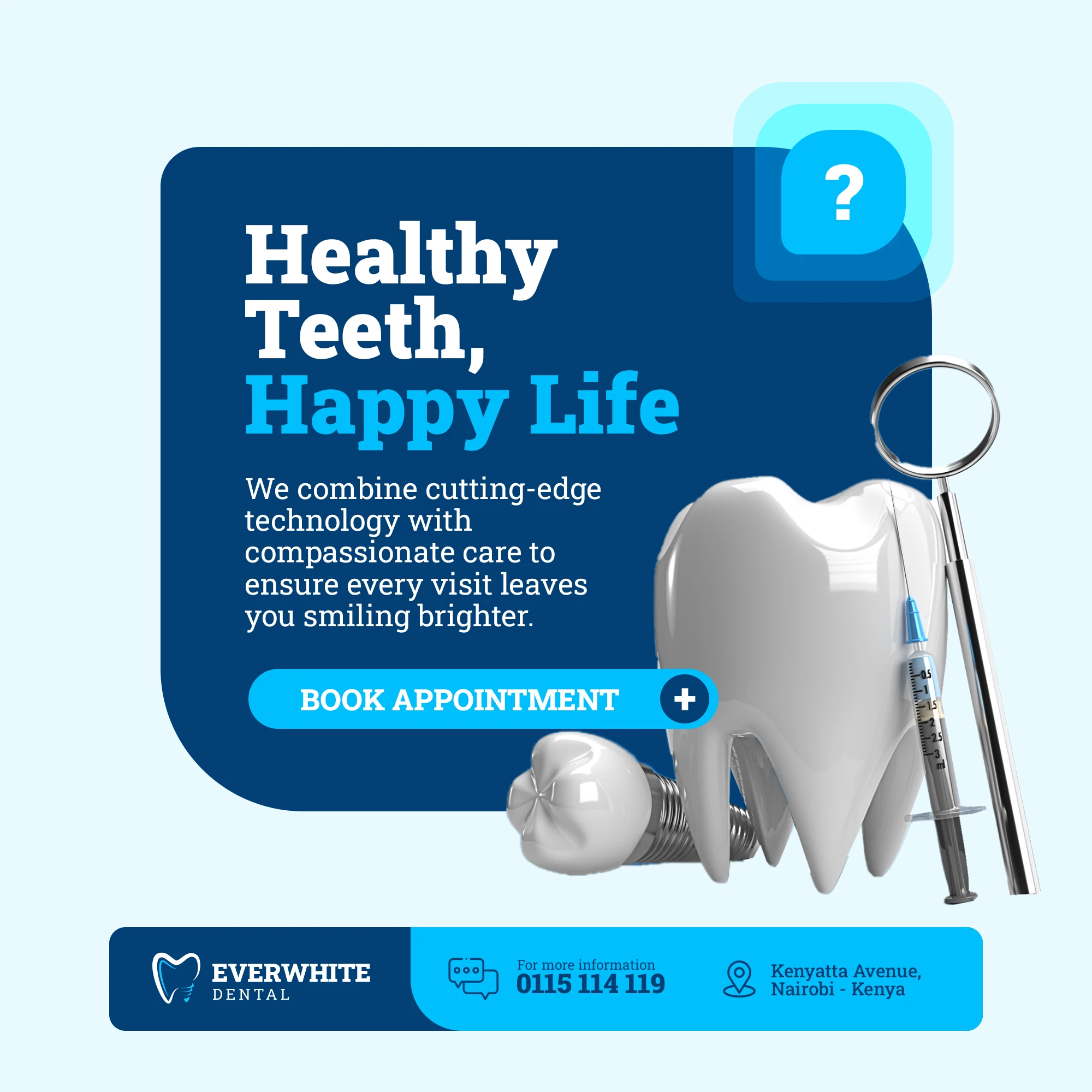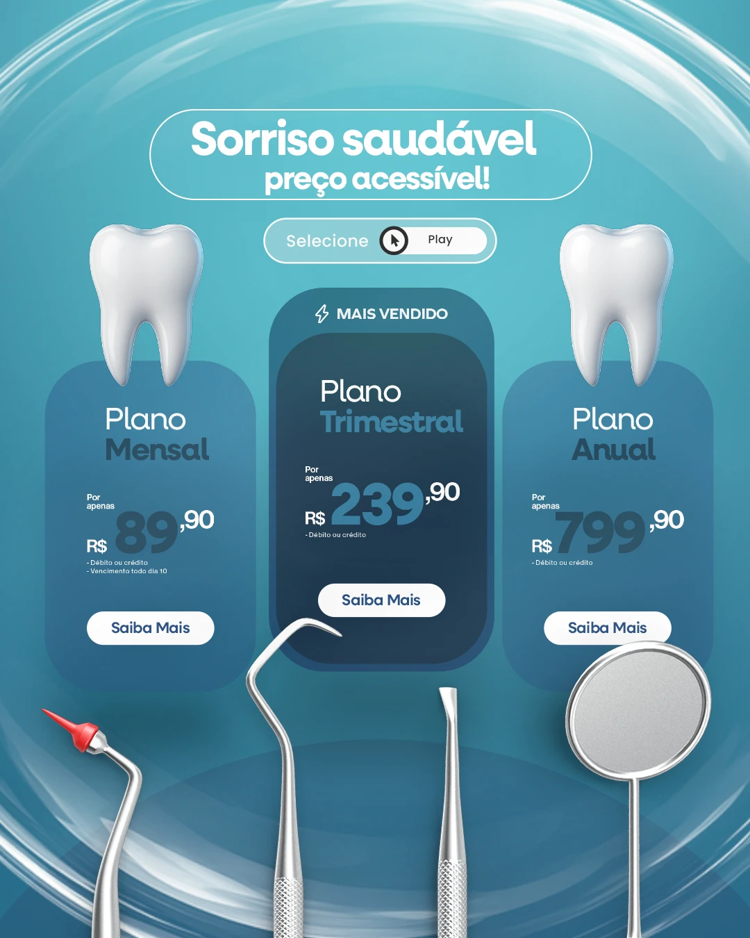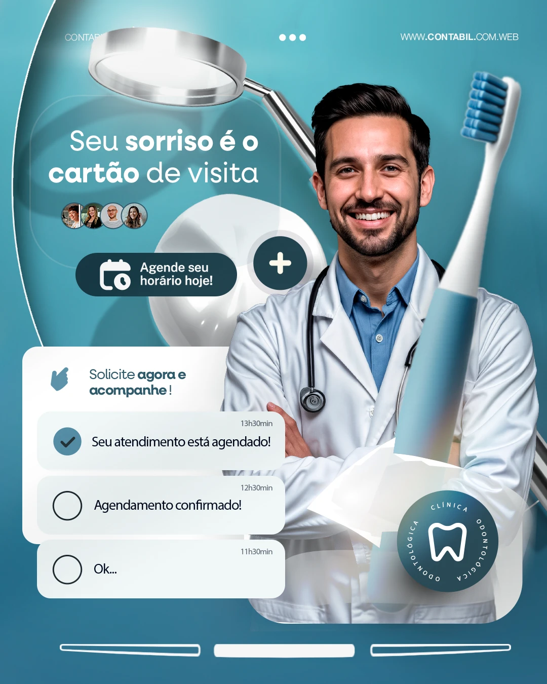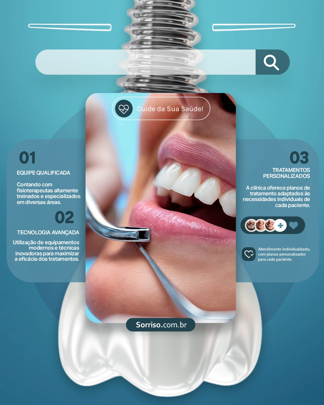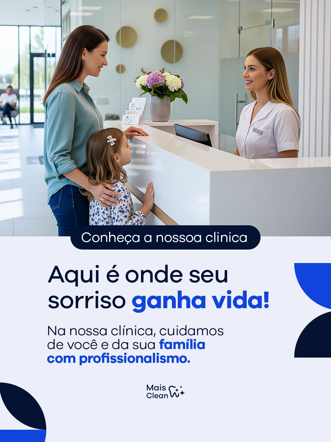 These projects was developed for social media with the goal of enhancing the visual identity of modern dental clinics. The composition combines realistic photographic elements with clean icons and graphics, using a light color palette with shades of blue that evoke health, trust, and professionalism. The images highlight smiles and dental equipment, creating a welcoming and informative visual narrative that brings the audience closer to the services offered.