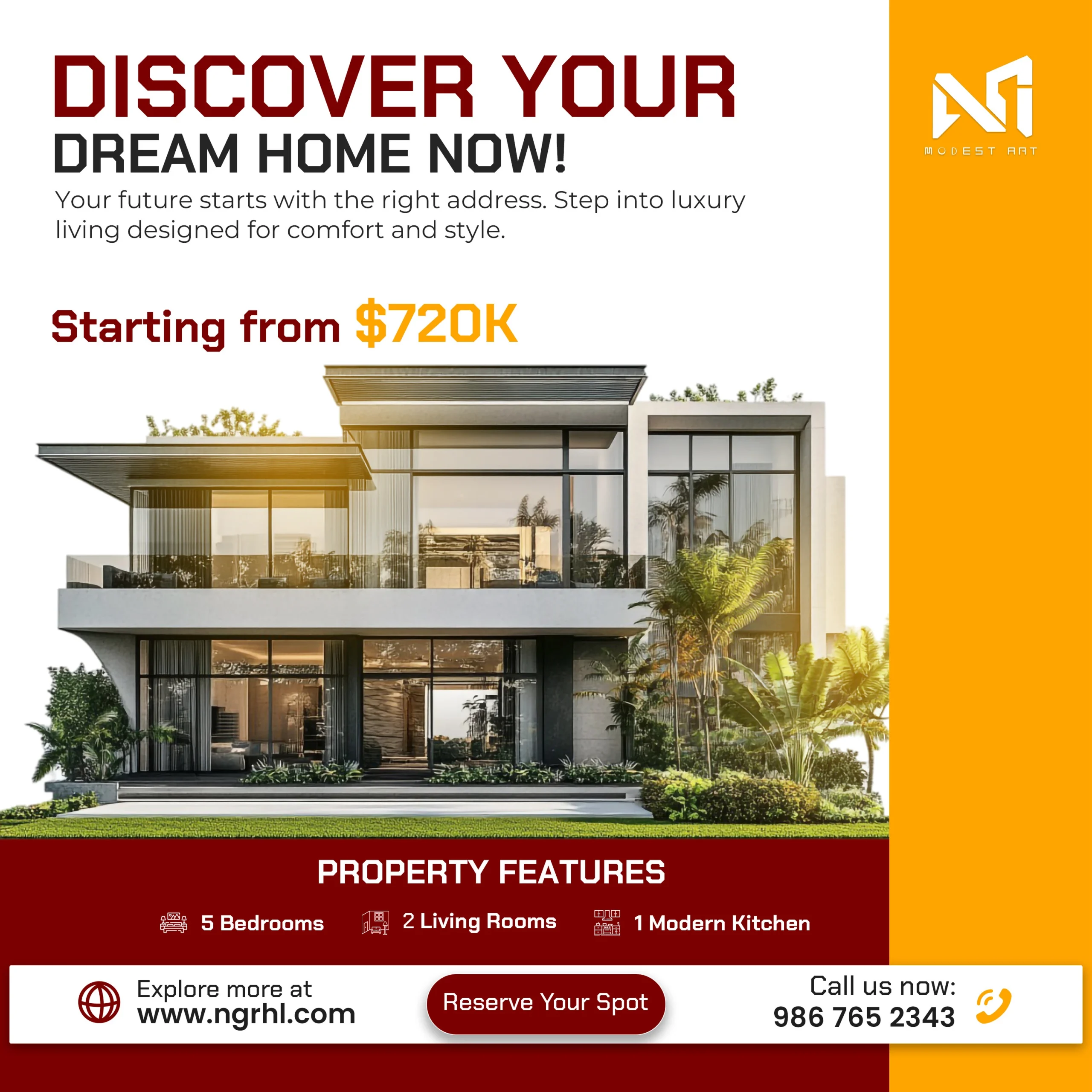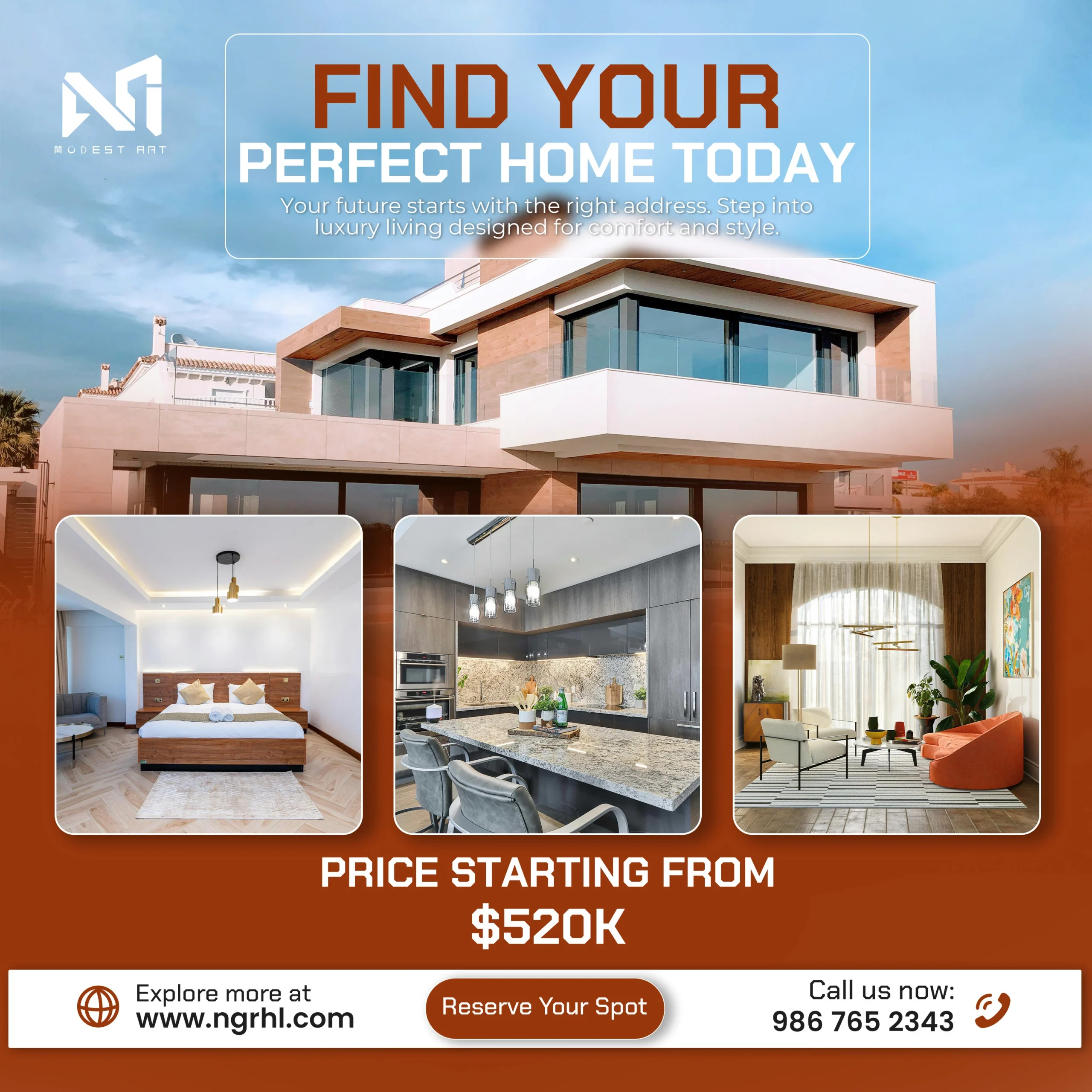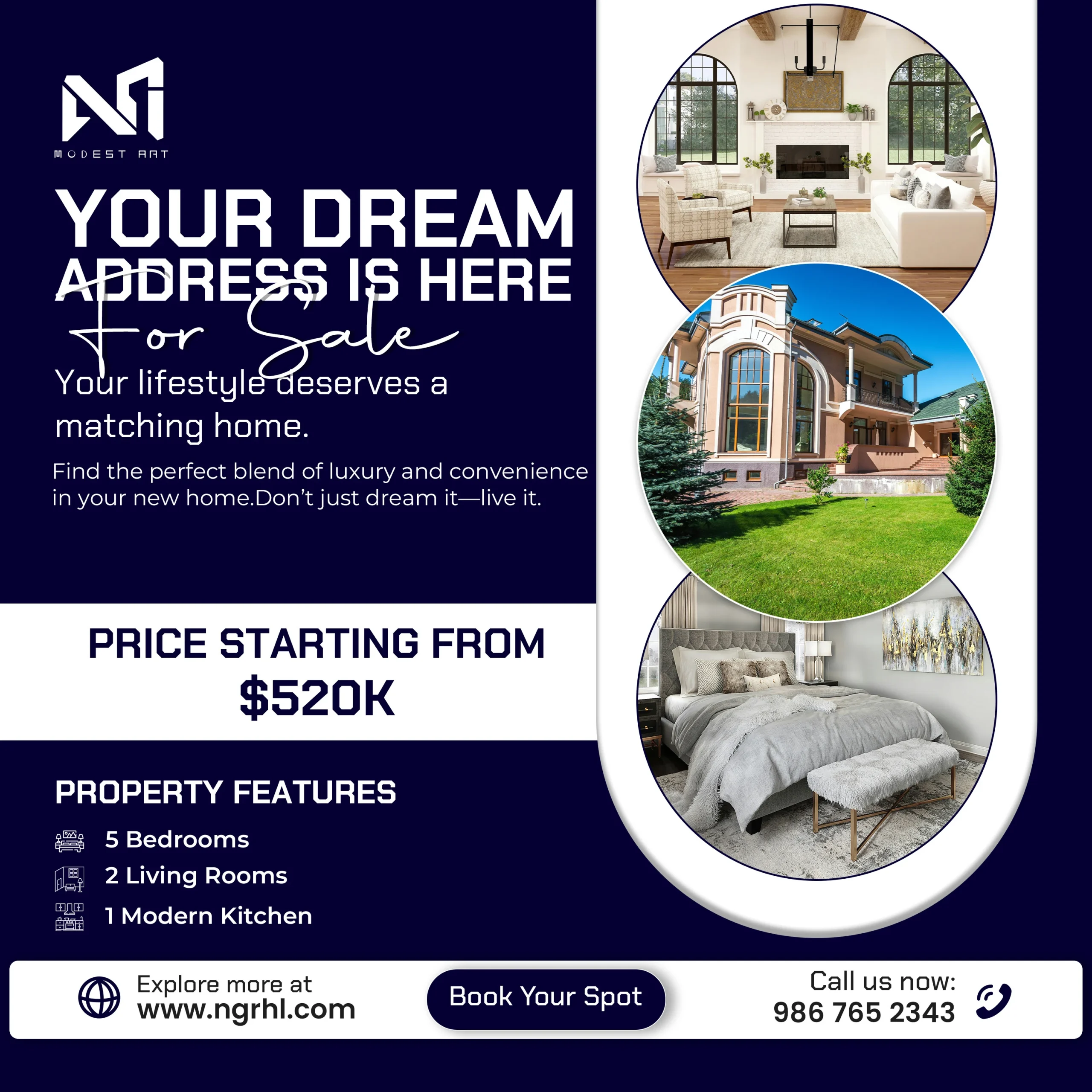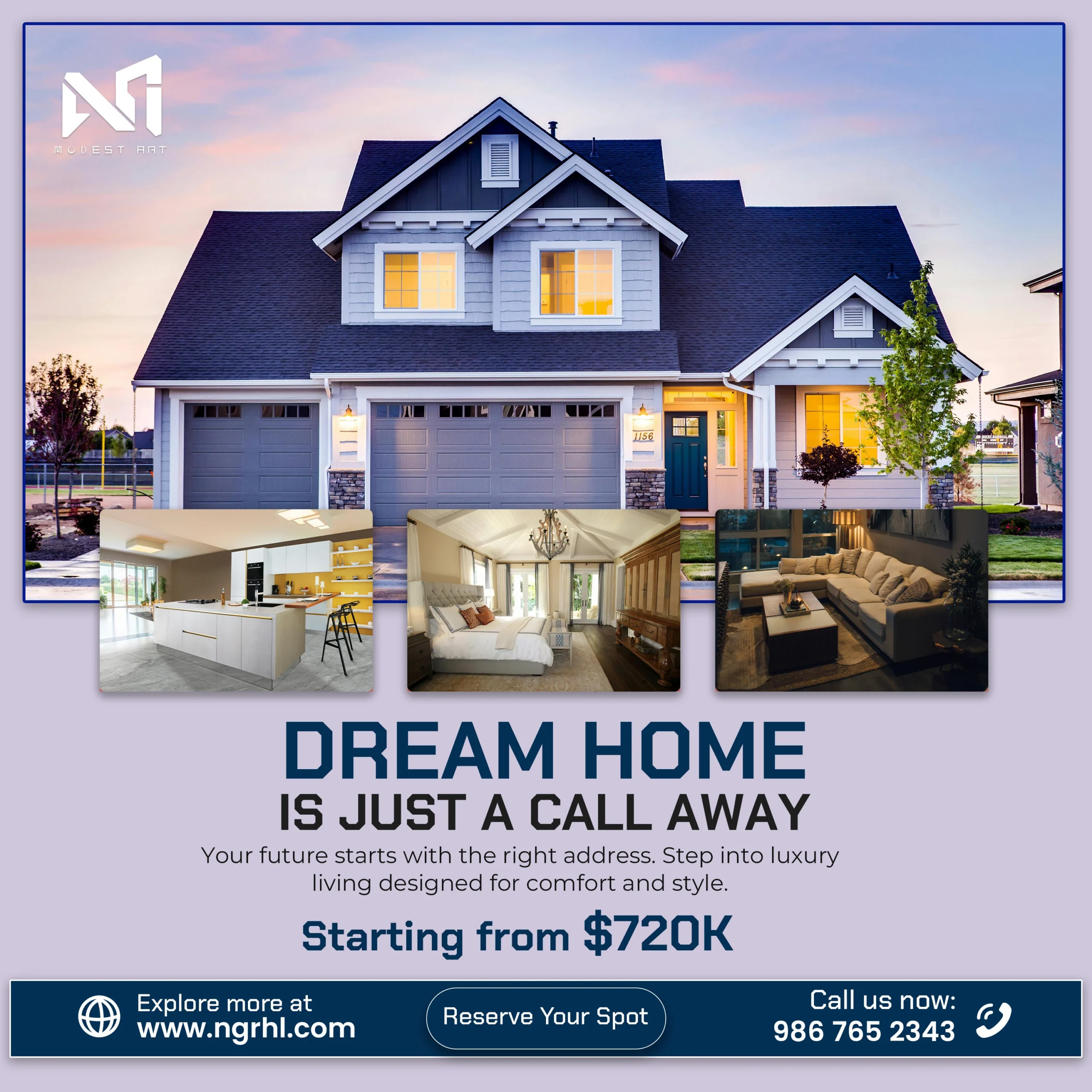 This project was developed for social media to strengthen the online presence of real estate brands. It features a cohesive collection of 12 high-impact posts designed for Instagram, Facebook, LinkedIn, and Pinterest. Each 1080×1080 layout combines striking property images with bold headlines and color-coded themes, presenting key details such as price, features, and calls-to-action in a clear and engaging way.